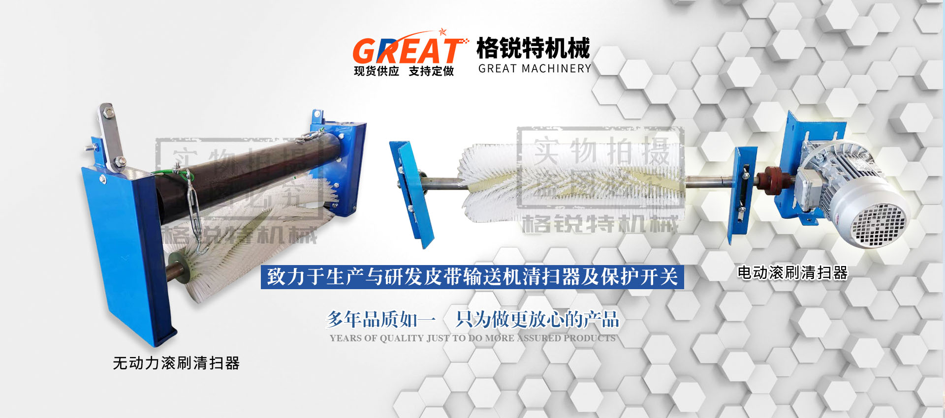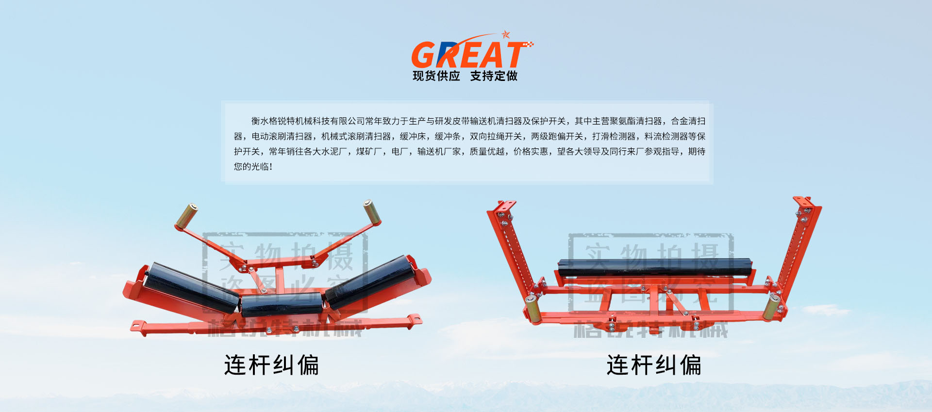 衡水格銳特機(jī)械科技有限公司常年致力于生產(chǎn)與研發(fā)皮帶輸送機(jī)清掃器及保護(hù)開關(guān),其中主營(yíng)聚氨酯清掃器,合金清掃器,電動(dòng)滾刷清掃器,機(jī)械式滾刷清掃器,緩沖床,緩沖條,雙向拉繩開關(guān),兩級(jí)跑偏開關(guān),打滑檢測(cè)器,料流檢測(cè)器等保護(hù)開關(guān),常年銷往各大水泥廠,煤礦廠,電廠,輸送機(jī)廠家,質(zhì)量?jī)?yōu)越,價(jià)格實(shí)惠,望各大領(lǐng)導(dǎo)及同行來廠參觀指導(dǎo),期待您的光臨!!!